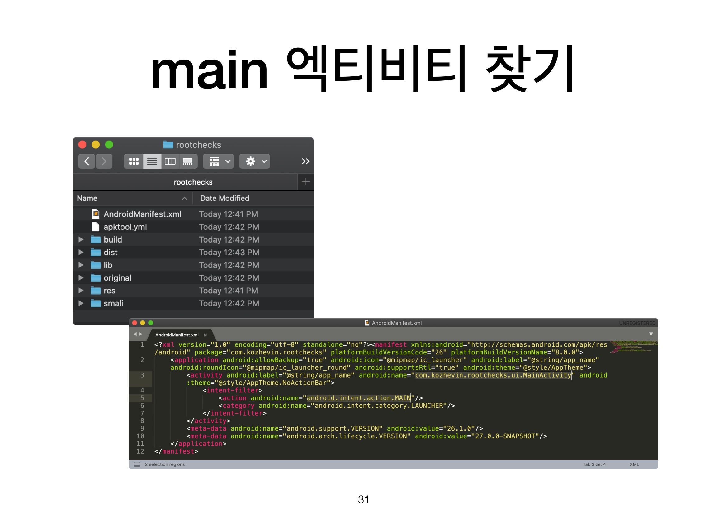 메인 엑티비티는 apk 파일 내의
