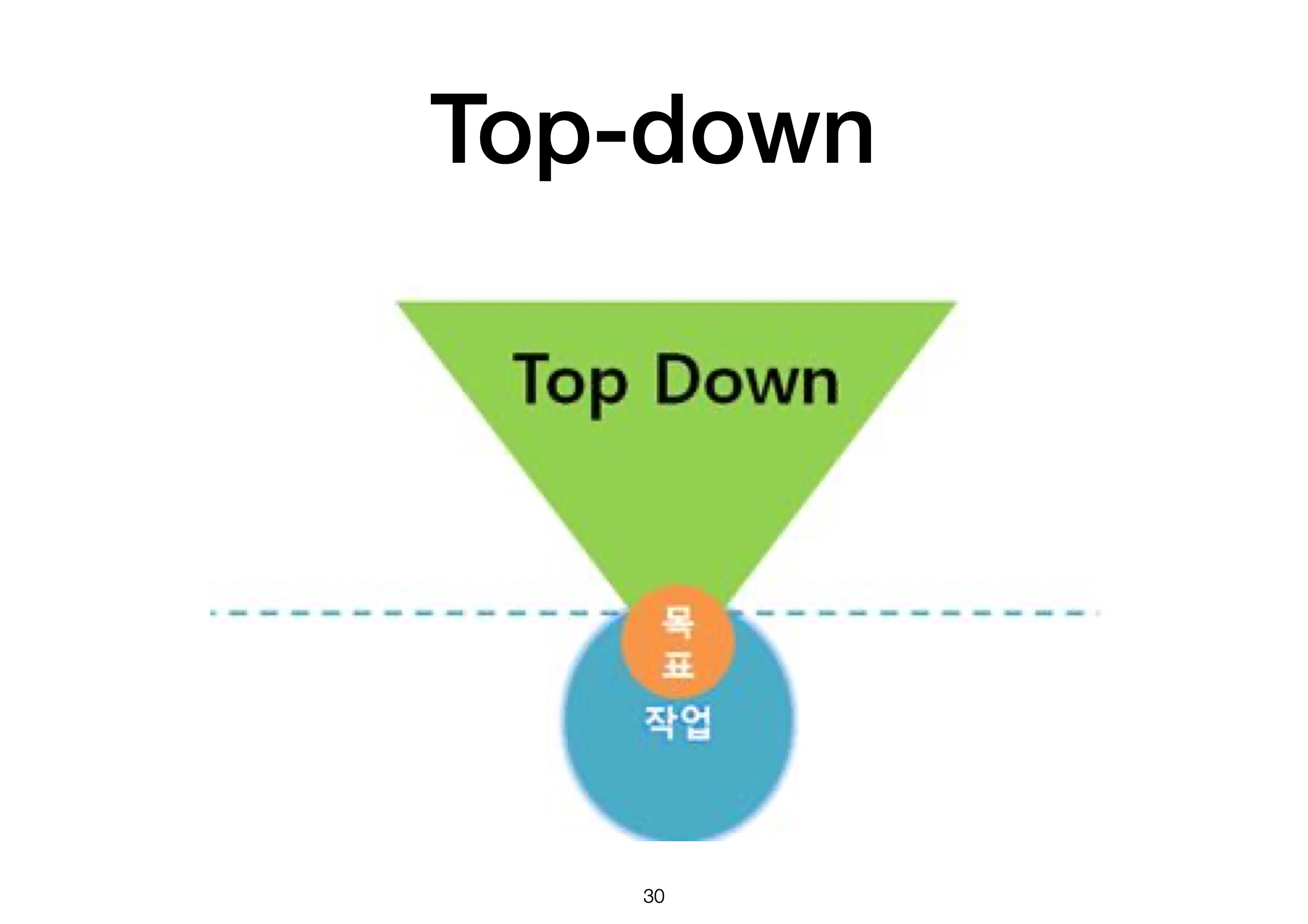 위에서부터 아래로, 큰 범주에서 목표를 향해 분석하는 방식입니다.