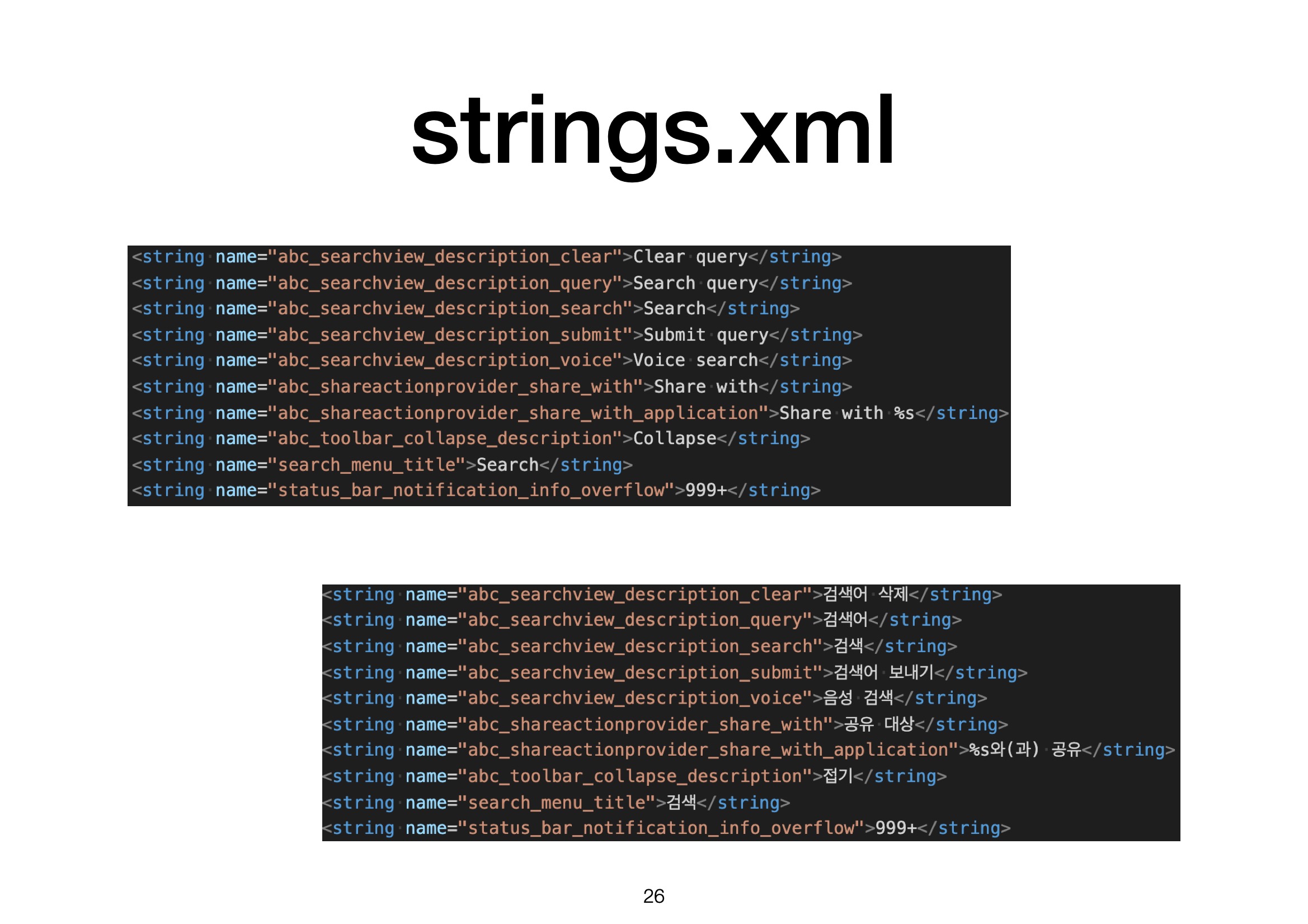 strings.xml 이 변수명과 그 값을 저장한 파일이라면,
