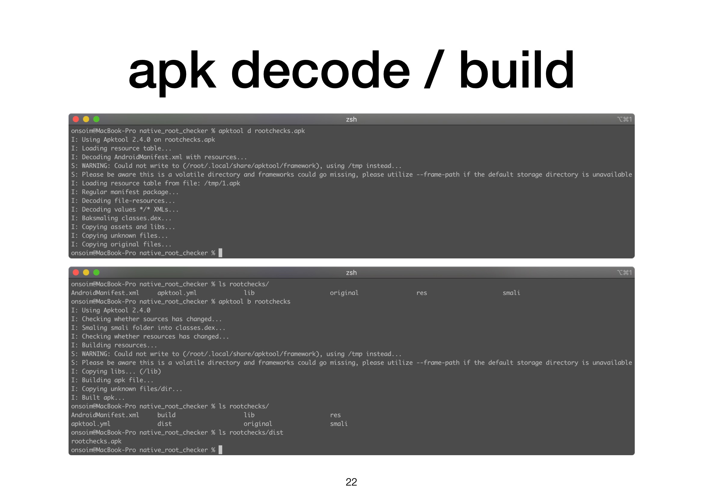 apk의 디코드와 빌드는 apktool을 이용할 수 있습니다.