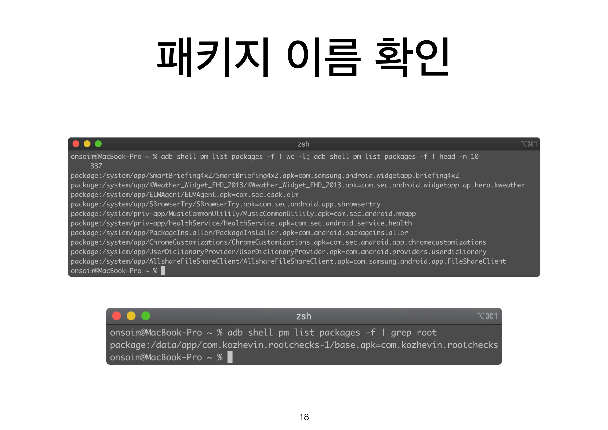 패키지의 목록은 pm list packages -f로 확인할 수 있으며,