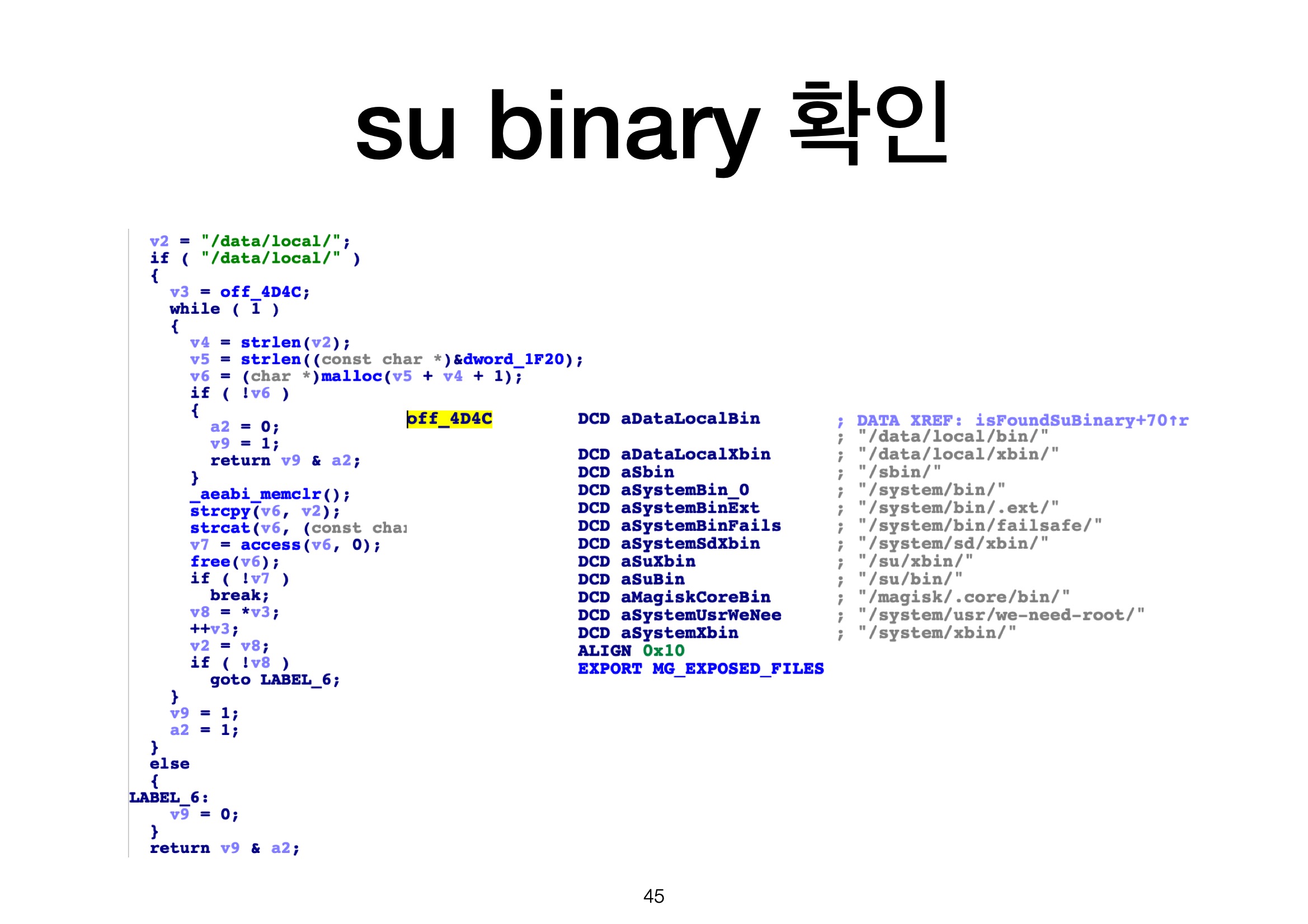 방금 전에는 특정 폴더들에서 su 바이너리가 있는지 찾았습니다.